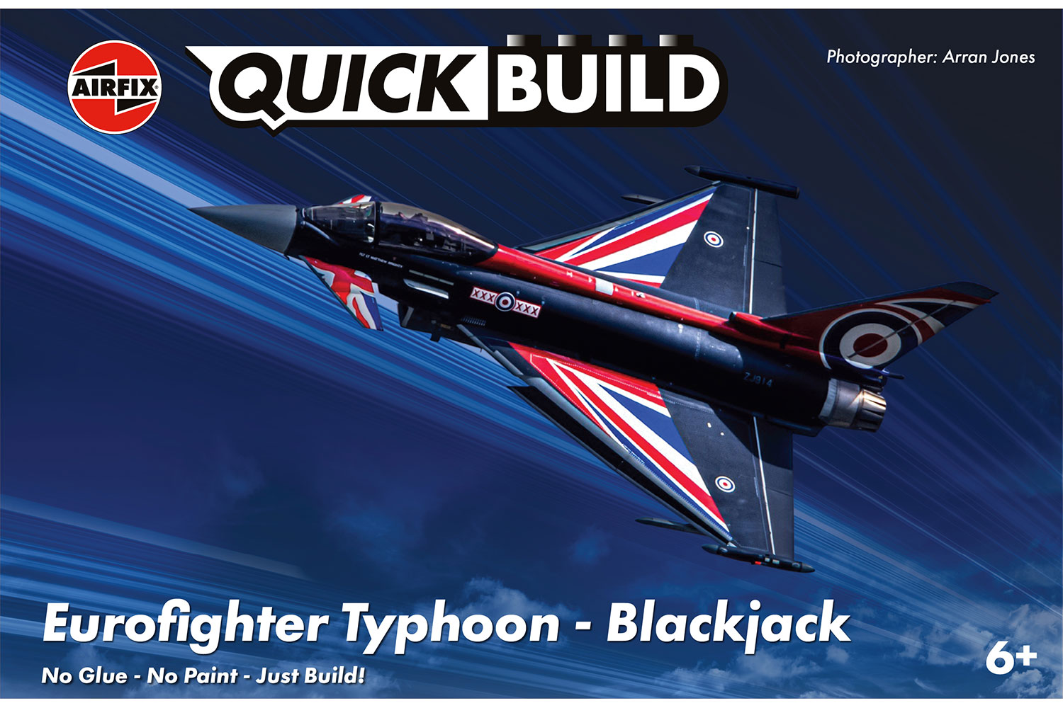 Airfix - QUICKBUILD Eurofighter Typhoon - Blackjack Product Code: J6059 (Pre-Order Due Summer 2026) The Eurofighter Typhoon was built for endurance. Develop your collection and add this slick, swift, and streamlined aircraft model to your workbench. This model has a total of 27 parts, with three additional parts for the stand. The height of the model when placed on the stand is 129mm. Airfix QUICKBUILD is an exciting range of simple, snap-together models suitable as an introduction to modelling for kids (ages 6 and up), or as a bit of construction fun for the more experienced modeller.