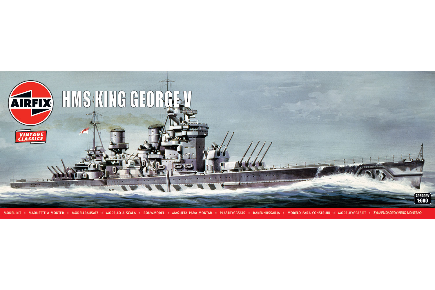 Airfix - HMS King George V - 1:600 Product Code: A06205V (Pre-Order Due May 2026) KGV was made the flagship of the Home Fleet under the command of Admiral Sir John Tovey after the destruction of HMS Hood, and was involved in the chase and the sinking of Hood’s opponent, the German battleship Bismarck. In the Mediterranean, KGV covered the Operation Husky landings at Sicily.