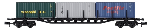 DB container wagon. Loaded with 3 x box containers. Overall Length: 13.10cm,