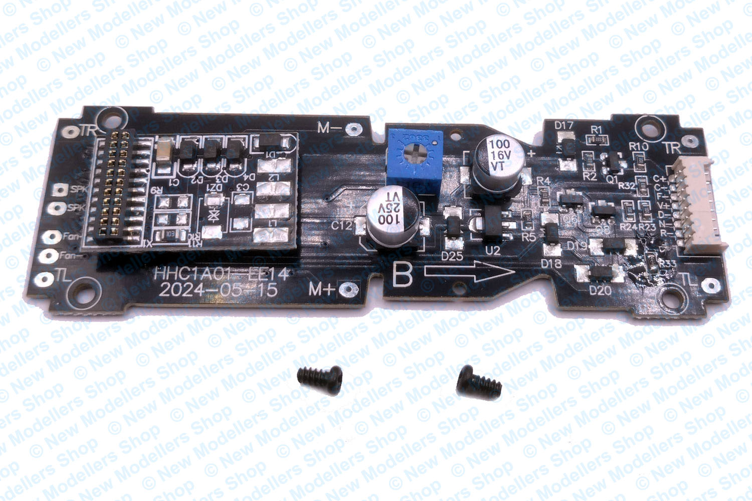 Production Details: Replacement speakers, PCB and screws for Hornby Class 43 HST diesel locomotive (2023 onwards). Model numbers: R30095, R30096, R30097TXS, R30343, R30098, R30099, R30204, R30219, R30215, R30239, R30077, R30218, R30385, R30386TXS, (Hornby service sheet number: 481).